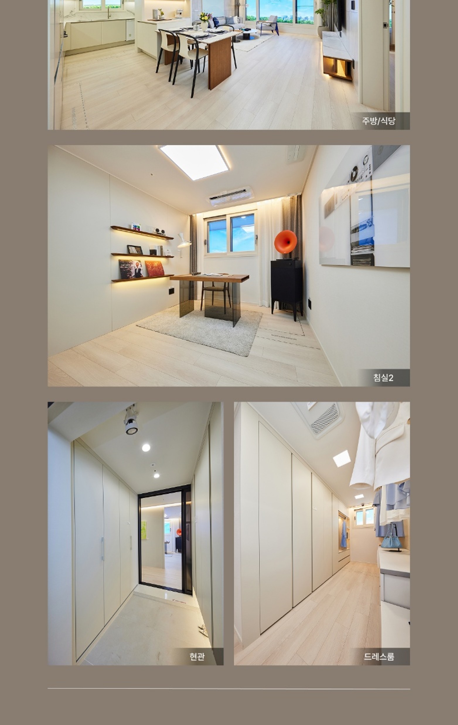 - ※ 상기 이미지 상 창호 외부의 배경은 실제 전망이 아닌 견본주택 내부 연출을 위해 임의로 표현한 이미지이며, 청약 및 계약 전 사업부지를 직접 방문하시어 주변 환경을 확인하시기 바랍니다.